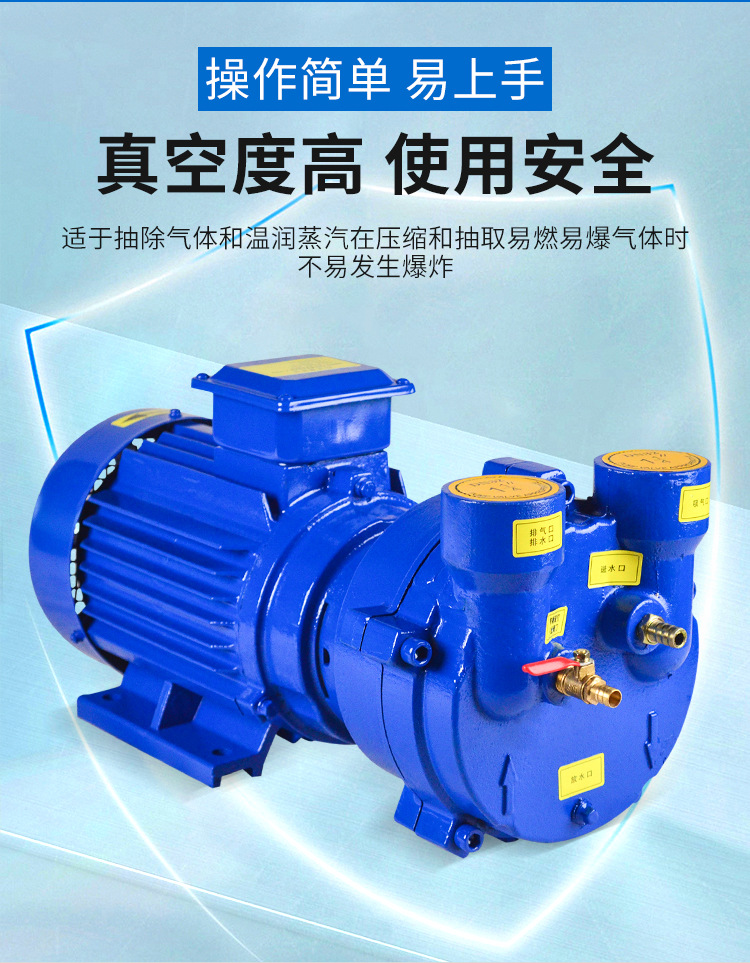 2BV系列水環(huán)真空泵及壓縮機被廣泛用于石油、化工、制藥、食品、制糖工業(yè)等領(lǐng)域。由于在工作過程中,氣體的壓縮過程是等溫的,所以在壓縮和抽吸易燃易爆氣體時,不易發(fā)生爆炸,所以其應用更加廣泛。