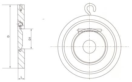 H74H對夾旋啟式止回閥采用內(nèi)裝搖臂旋啟式結(jié)構(gòu),閥瓣繞轉(zhuǎn)軸作旋轉(zhuǎn)運動,靠介質(zhì)流動推開閥瓣介質(zhì)通過,當(dāng)介質(zhì)倒流時,閥瓣靠自身重量以及倒流介質(zhì)的作用,關(guān)閉閥門。